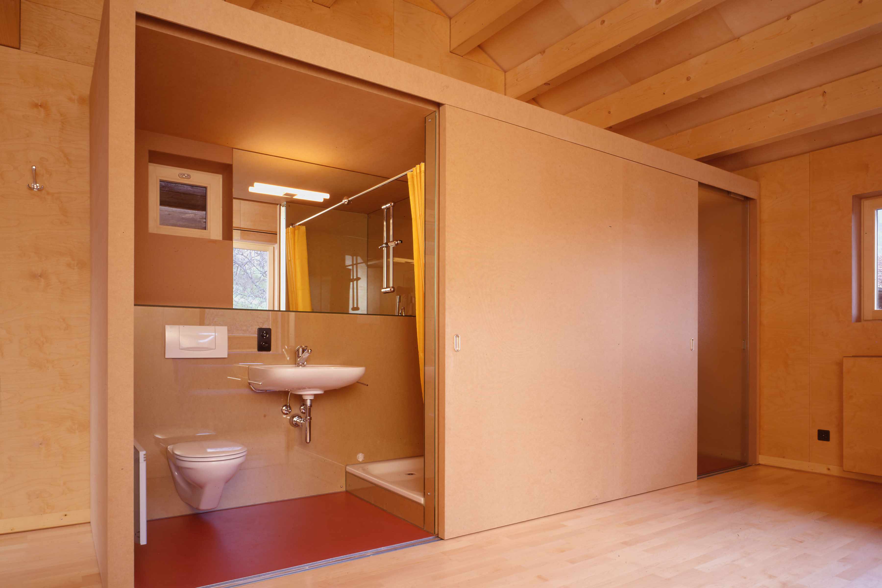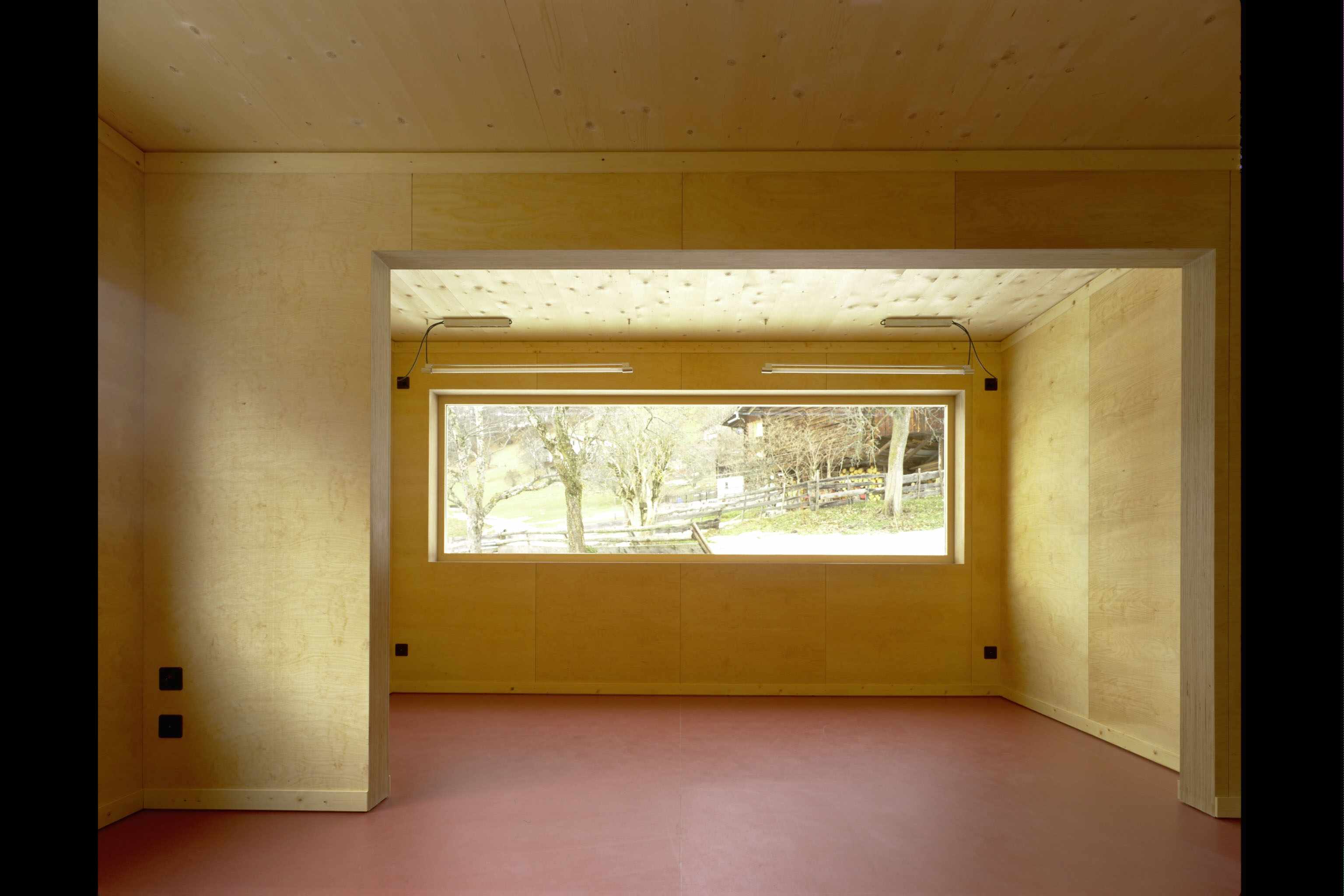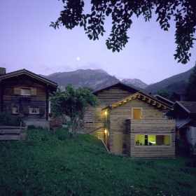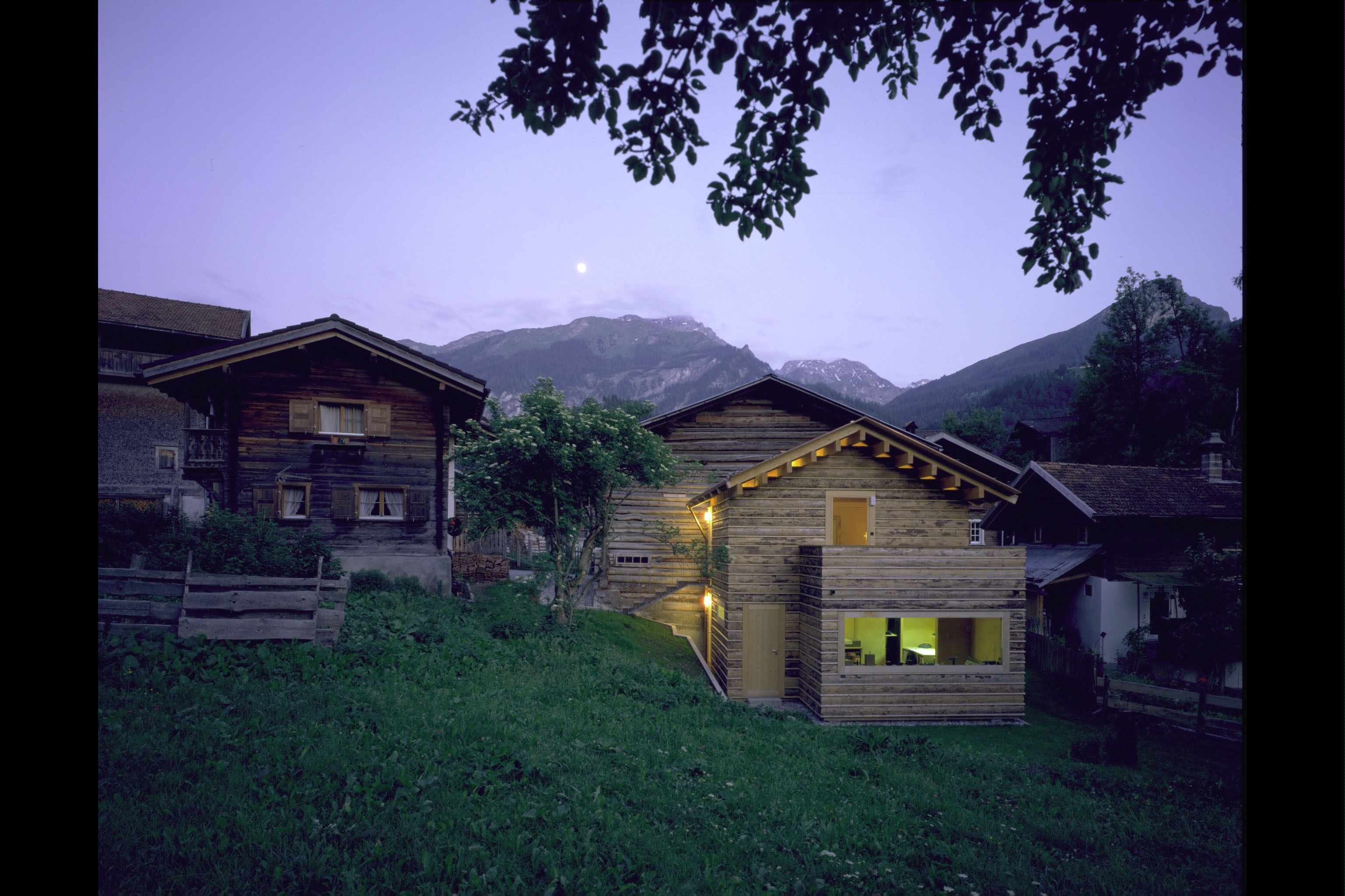 Wiederaufbau eines kleinen Atelier- und Wohnhauses im Hofstadtrecht in unmittelbarer Umgebung eines Rundholzstalles. Mit Rundholzabschnitten wurde eine einfache, hinterlüftete Fassade entwickelt, die das vertraute Bild der umgebenden Gebäude neu interpretiert.