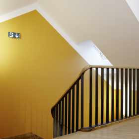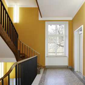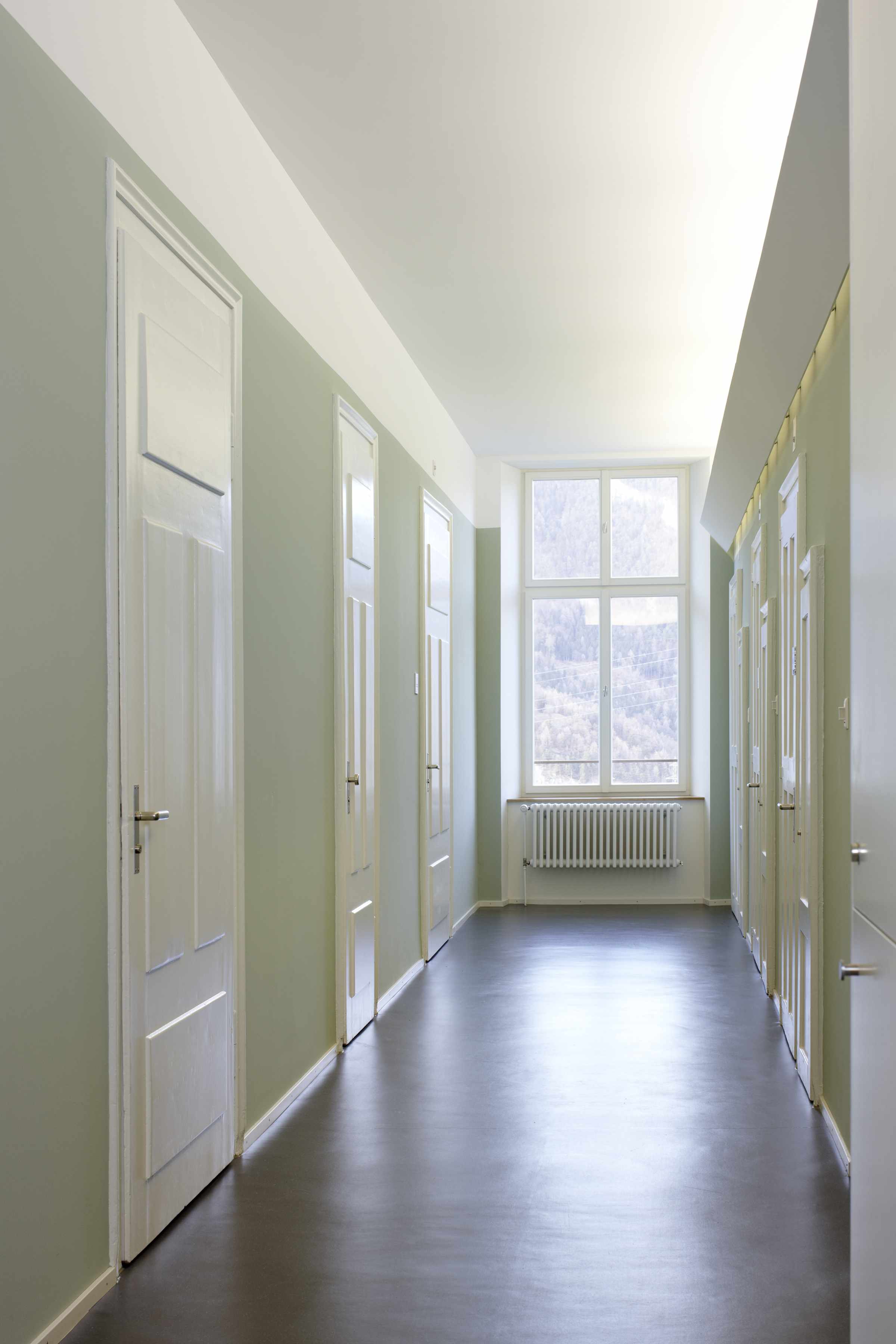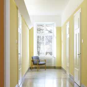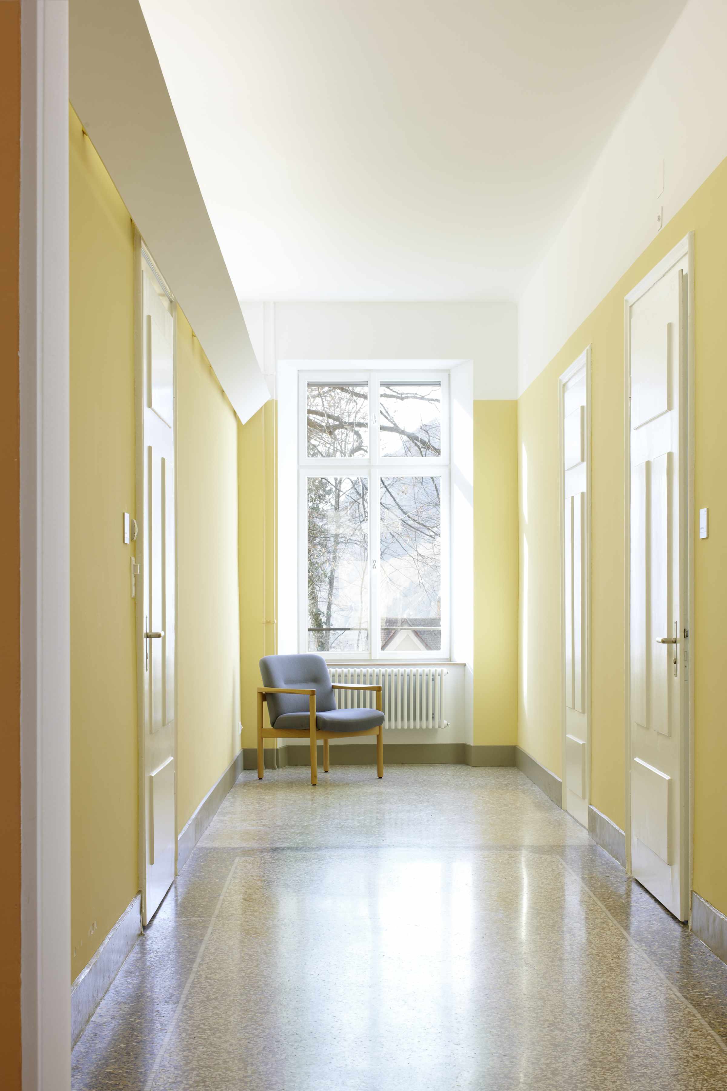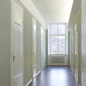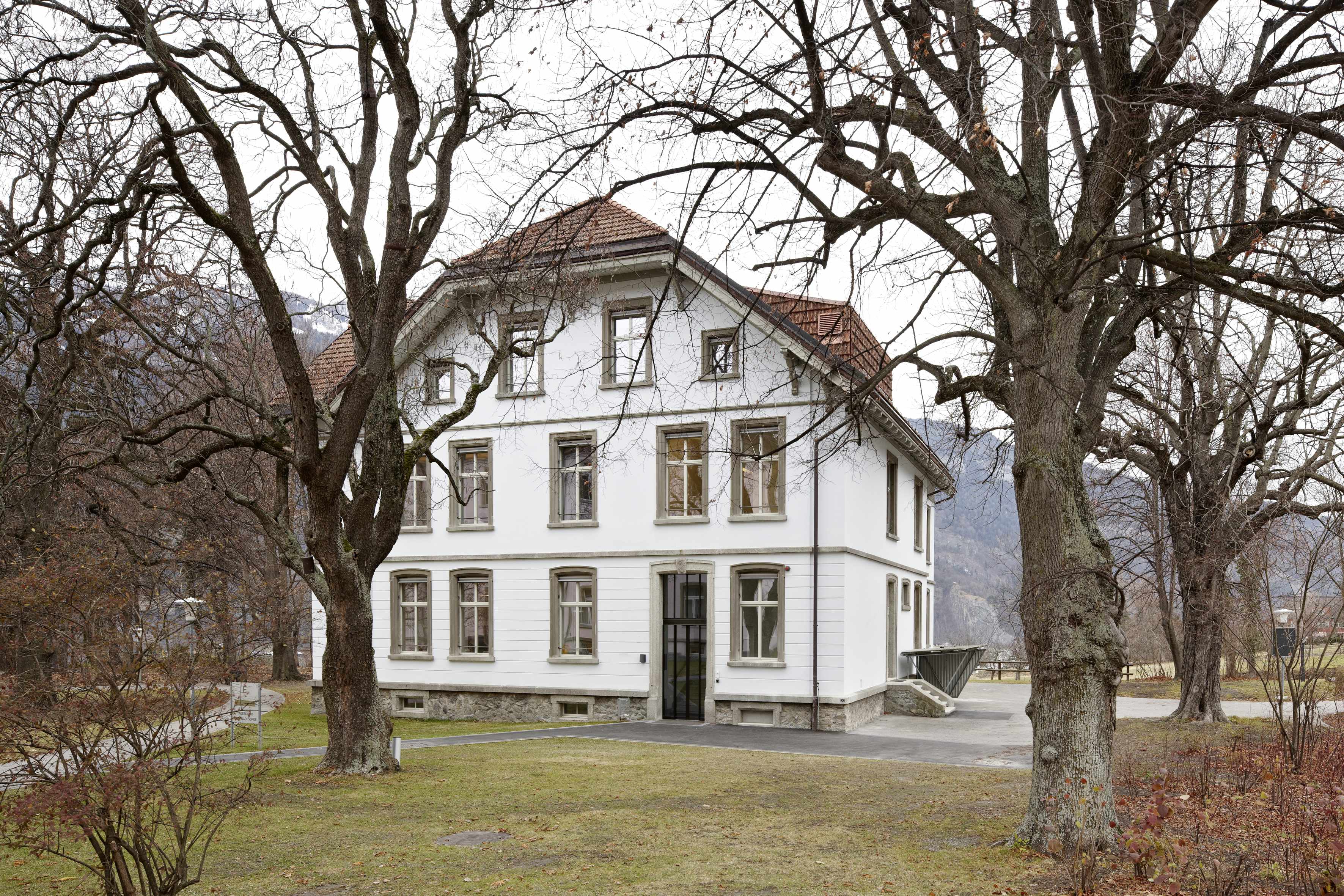 Wärmetechnische Sanierung in Minergiestandard für Umbauten des über 100-jährigen unter Schutzverfügung stehenden Gebäudes der Tagesklinik der Psychiatrischen Klinik Waldhaus in Chur. Unter Bewahrung der historischen und architektonischen Gebäudesubstanz wurde die Tagesklinik den neuen Anforderungen wie Energie, Brandschutz, Behindertengängigkeit und Arbeitssicherheit und Anpassungen für zukünftig vorgesehene Nutzung angepasst. Der Ausdruck der Innenräume wurde mit den minimalen Mitteln eines Farbkonzeptes aufgewertet. Dieses interpretiert als Thema eine mögliche Farbfassung des 19. Jahrhunderts.