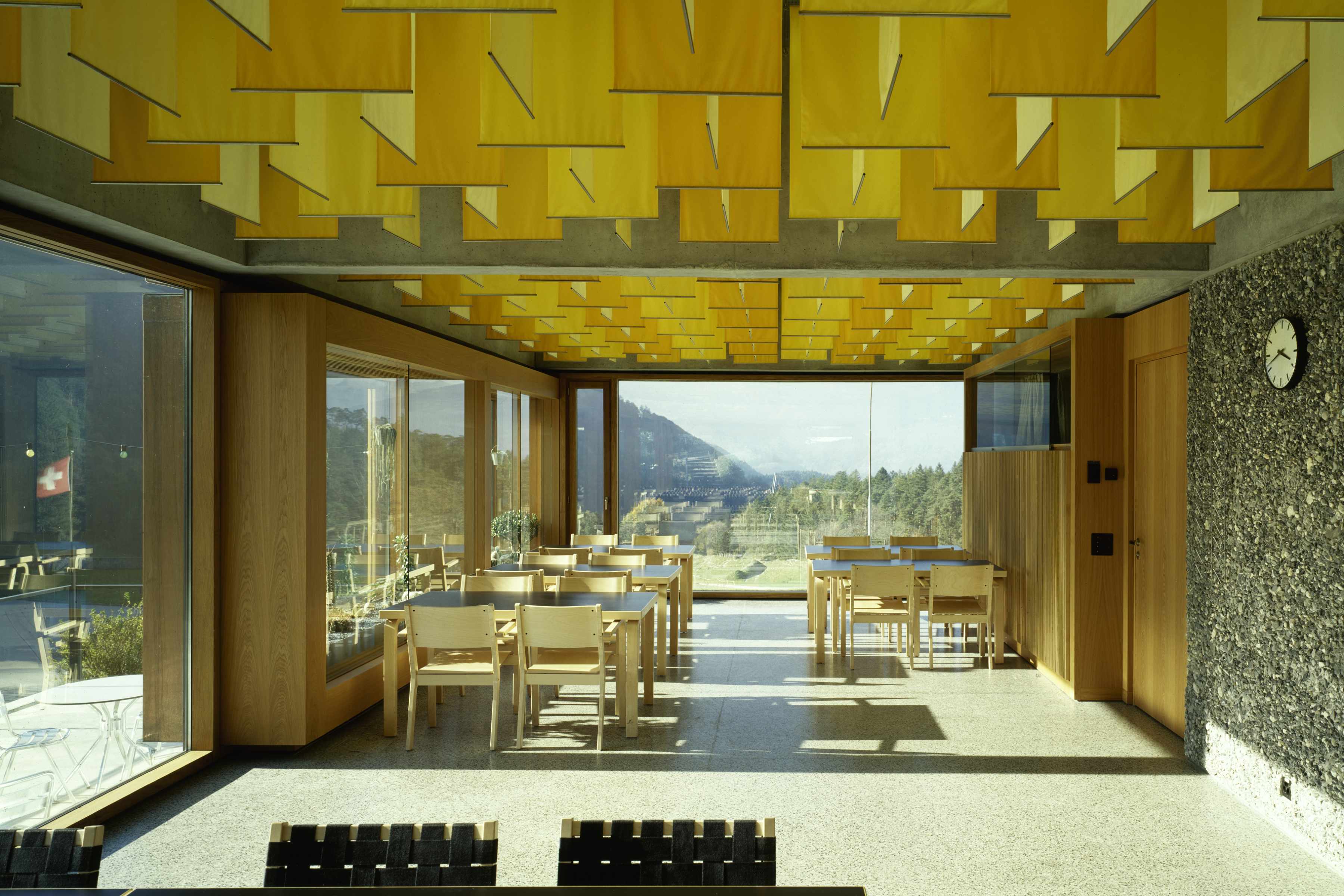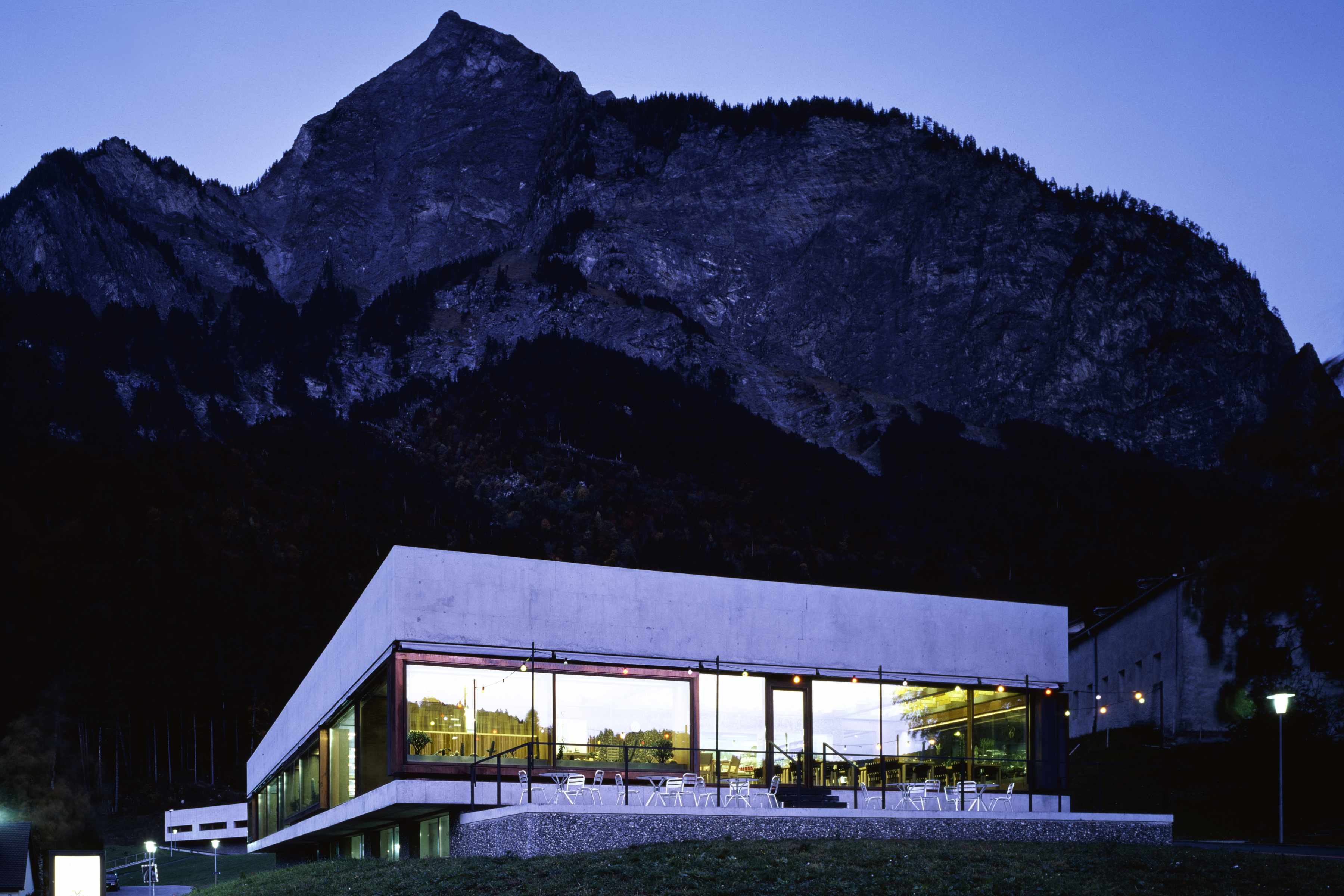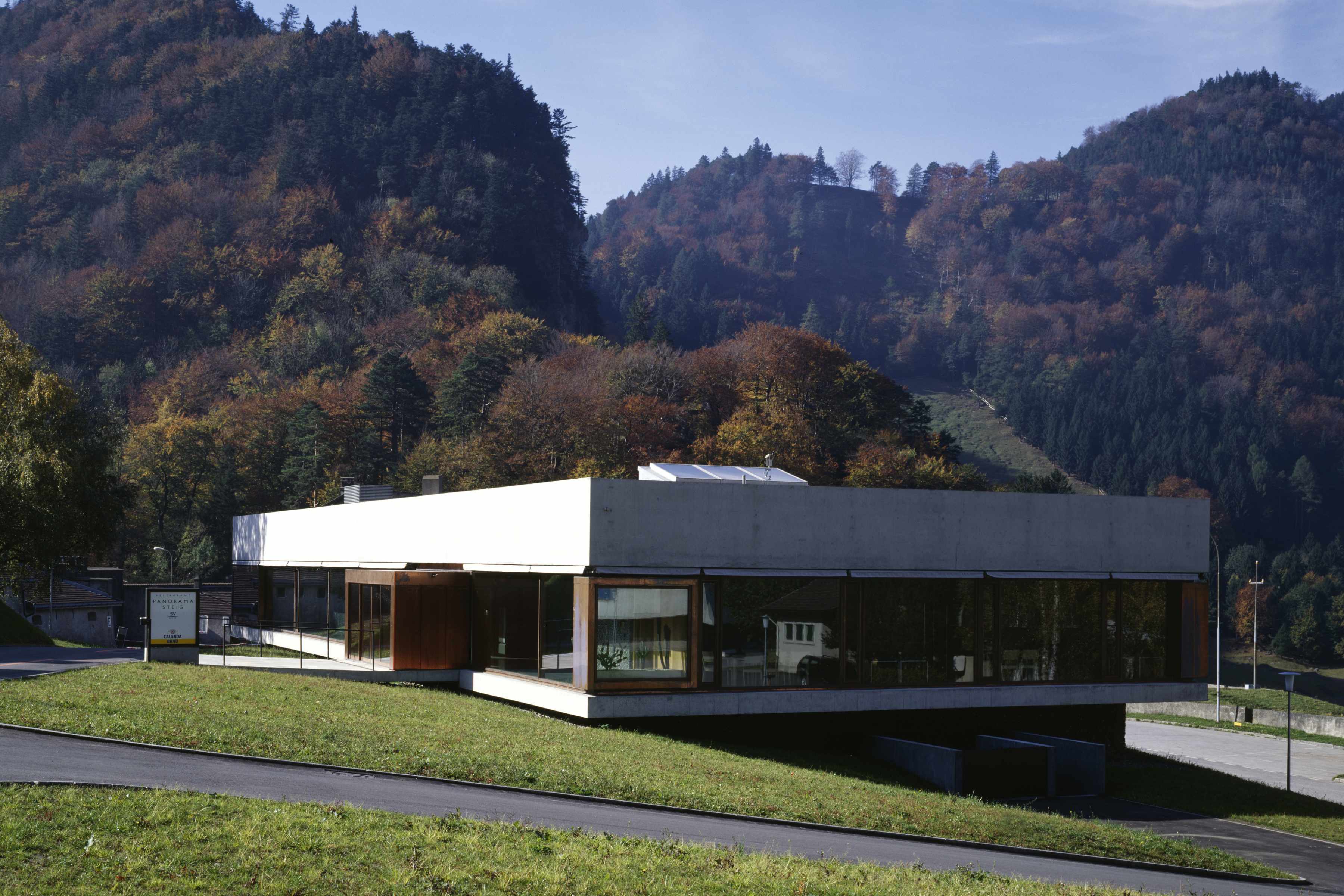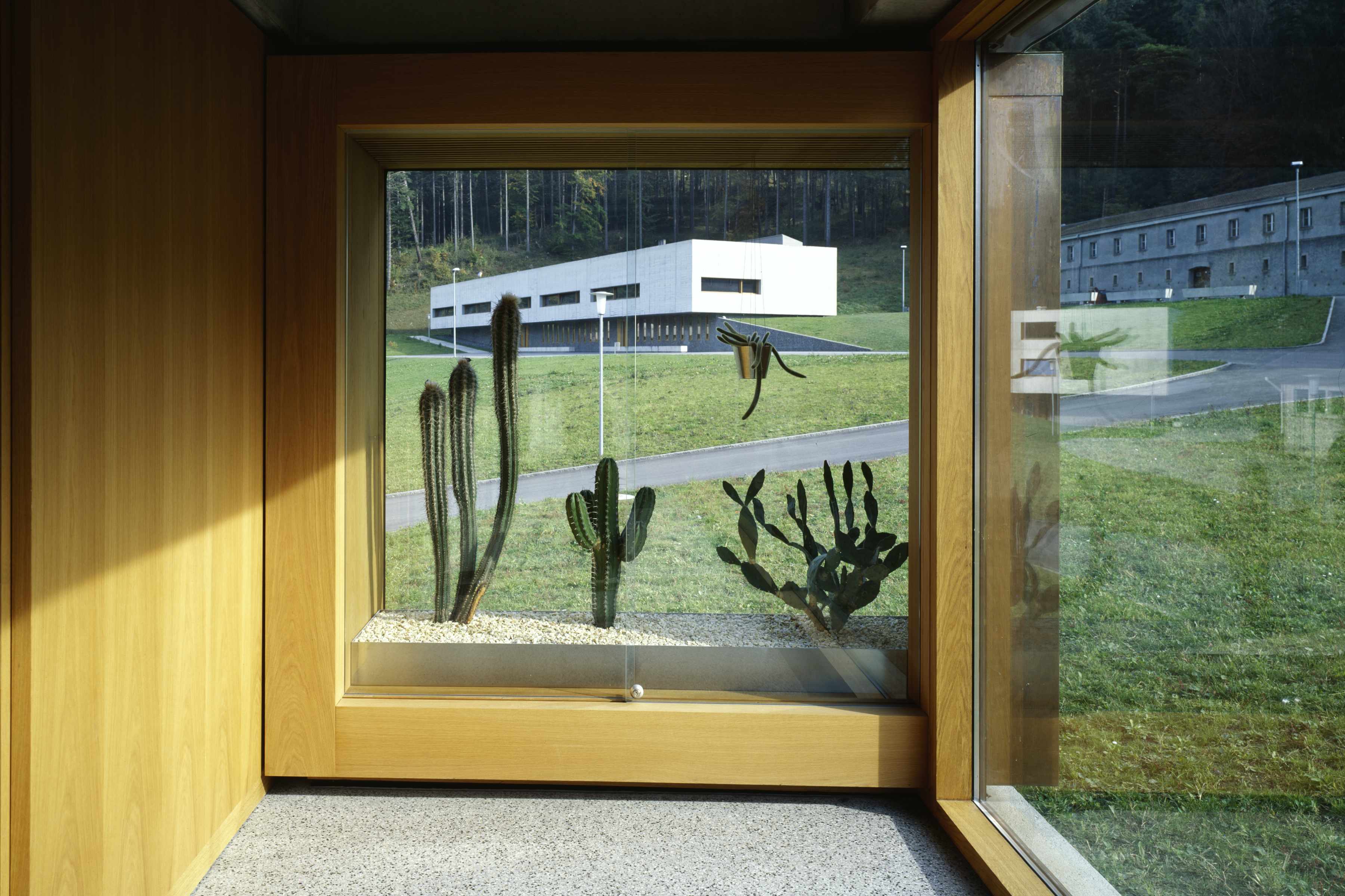 Die Neubauten, die mit der Fertigstellung des Restaurant- und Freizeitgebäudes im Jahre 2000 ihren Abschluss gefunden haben, sind typologisch mit Sockel und weit auskragenden Obergeschossen als Pavillons formuliert und finden in der Materialisierung aus verschieden strukturiertem Sichtbeton die Masstäblichkeit zur massig konstruierten, historischen Festungsanlage.